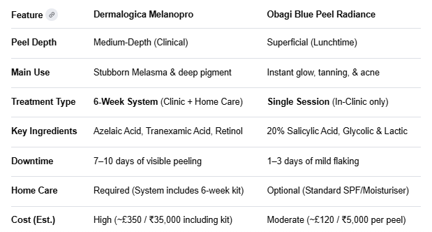 Fig: Melanopro Peel System vs Obagi Blue Peel Radiance