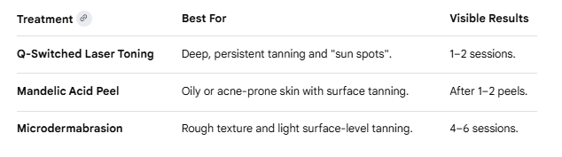 While many DIY home remedies fail to work on severely tanned skin, medical-grade treatments are highly recommended as follows: